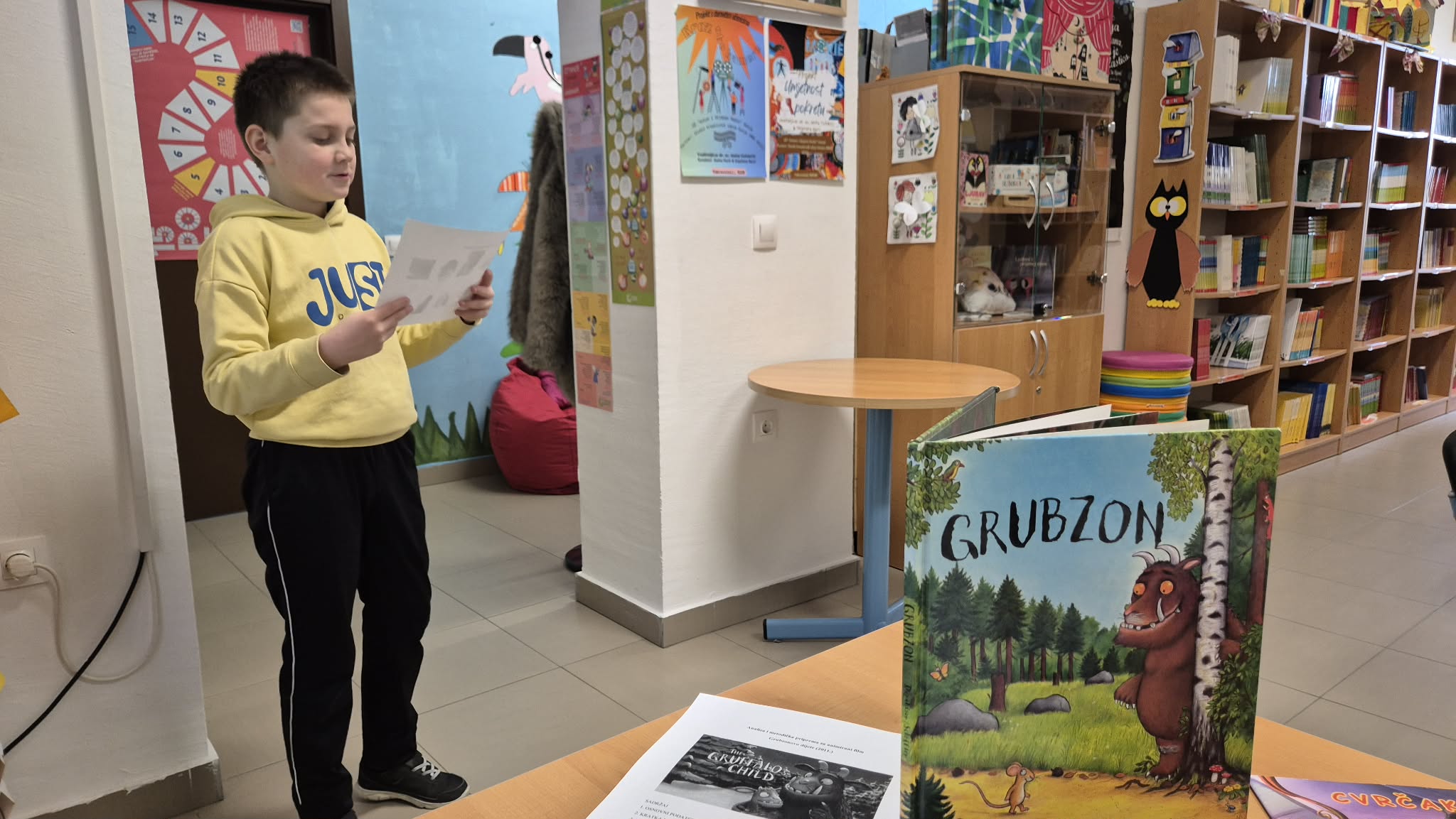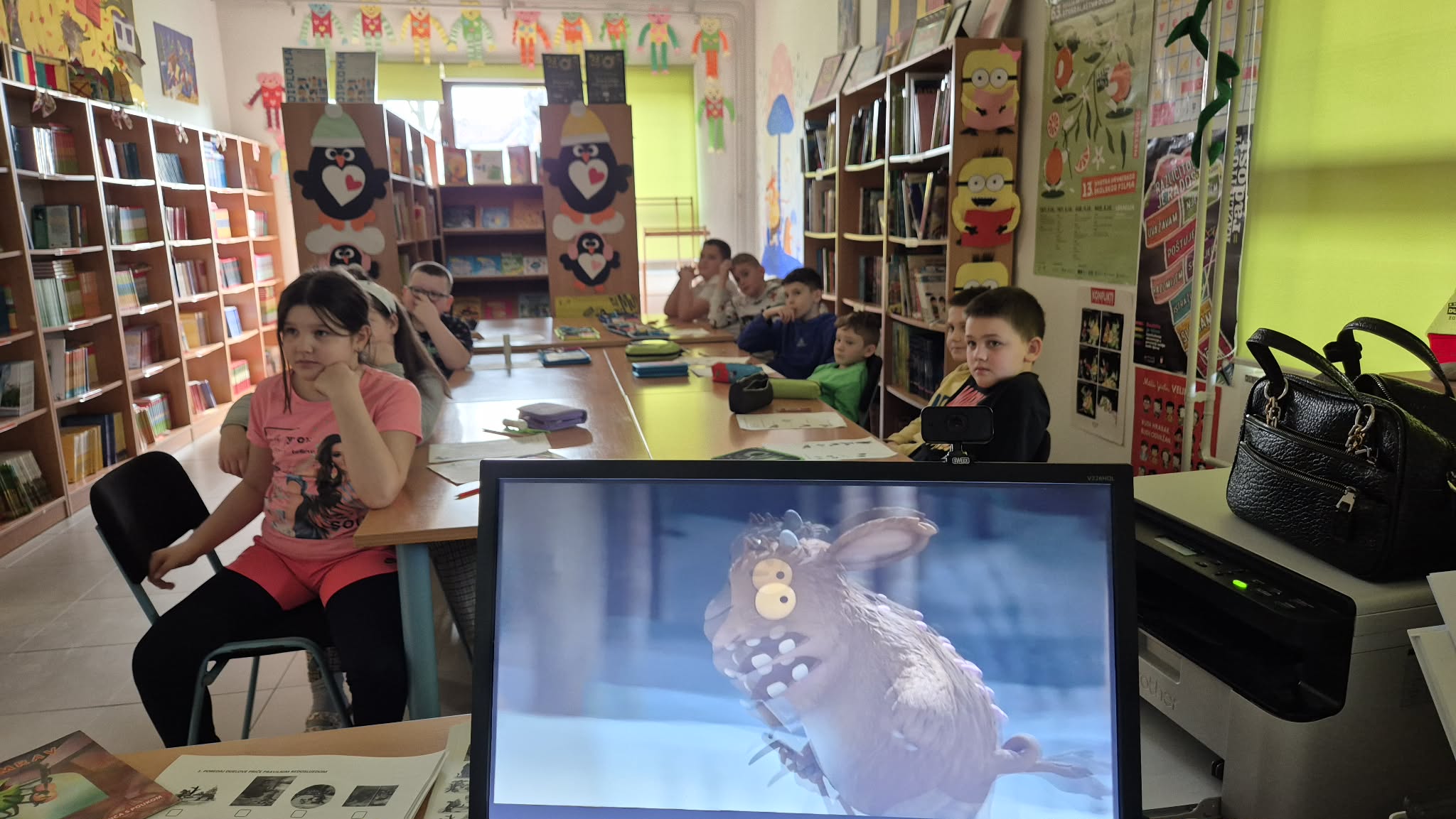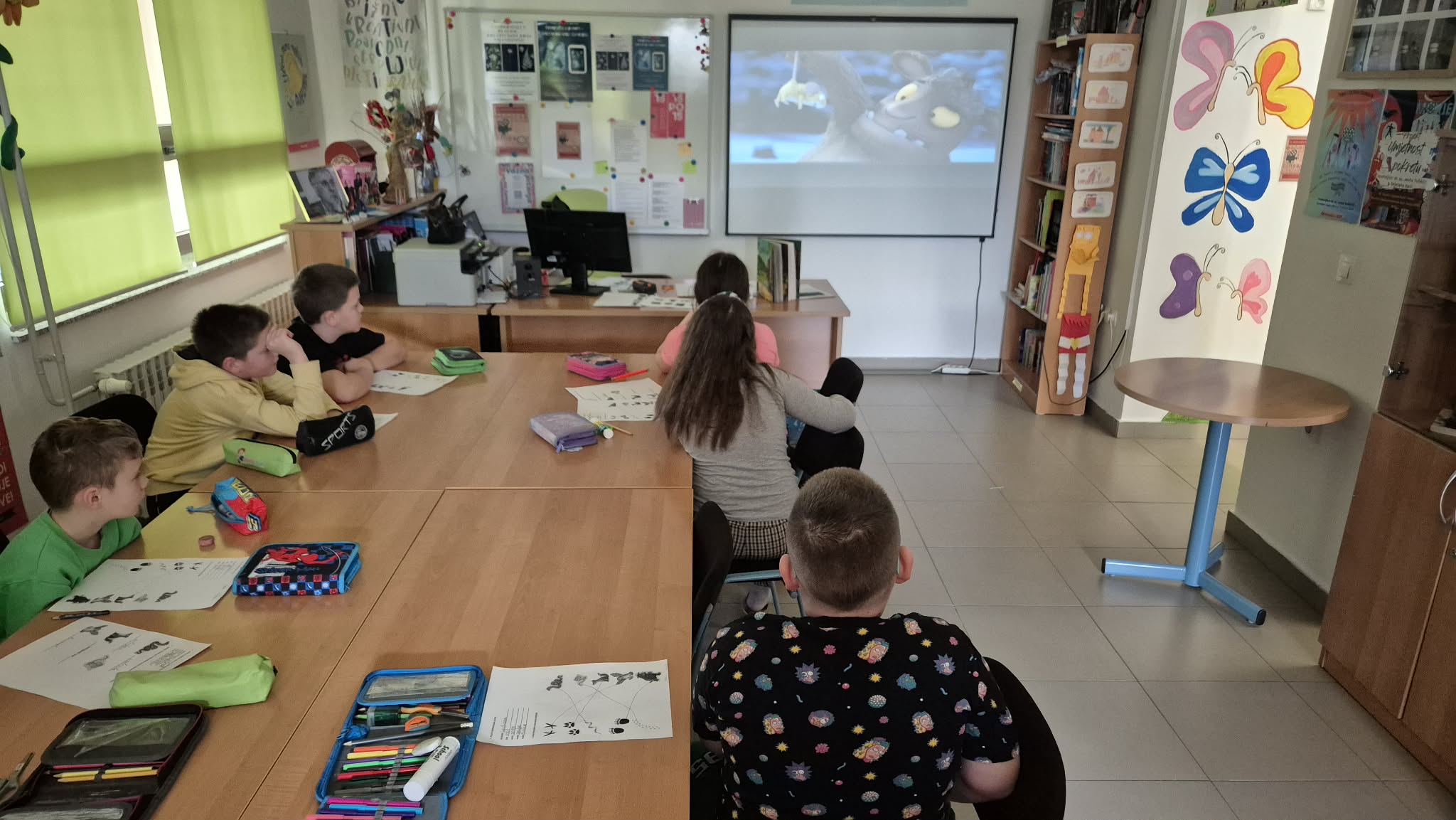 Prije gledanja filma učenici su sudjelovali u motivacijskim aktivnostima: kroz igru pantomime pogađali su koje se životinje pojavljuju u filmu. Knjižničarka je potom pročitala slikovnicu “Grubzon” kako bi se učenici prisjetili prve slikovnice ove poznate priče.