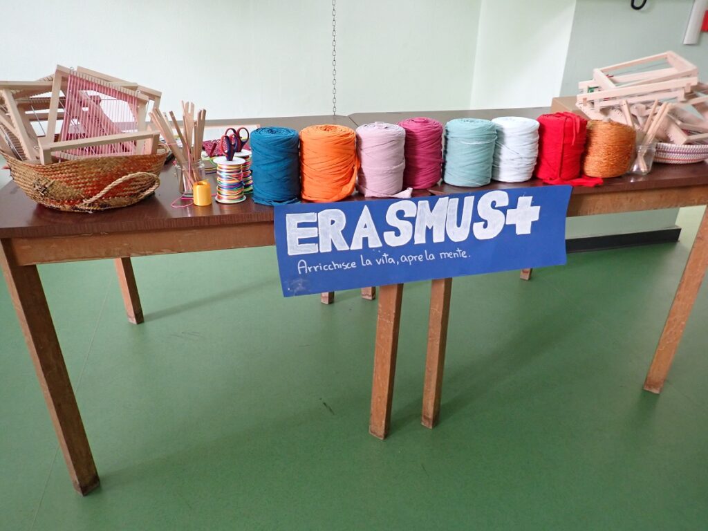 Izradili su ih talijanski učenici, a i orehovečki učenici uzvratili su na sličan način poklonivši domaćinima i ostalim partnerima torbe načinjene od starih traperica na koje su u svojoj školi ručno šivali slova E, R, A, S, M, U, S.