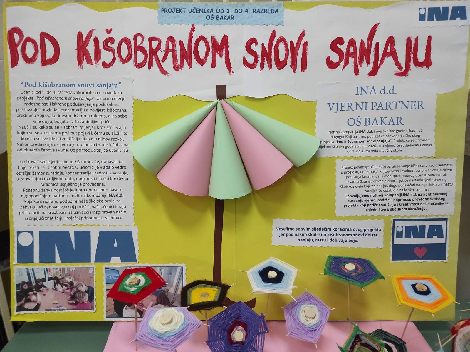 Poseban trenutak projekta jest izrada školskog kišobrana – pravog, velikog kišobrana koji će ponosno nositi obilježja OŠ Bakar i grada Bakra. Učenici su sami osmišljavali i slikali motive inspirirane gradom: njegove boje, simbole, more, povijesne detalje i prirodne ljepote.