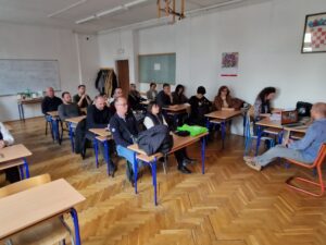 Nakon predavanja kratko su između sebe razmijenili dojmove o istima i krenuli put drugog dijela skupa u Muzej grada Zagreba gdje su se podijelili u dvije grupe. Prva grupa zaputila se u obilazak muzeja uz stručno vodstvo i zaplovila u samu povijest našega Glavnog grada, dok se je druga grupa zaputila na predavanje “Restauriranje u praksi” Damira Živka koji nas je uveo u svijet intarzije, grundiranja, poliranja gdje smo i sami “zaprljali” ruke koliko nam je bilo zanimljivo i poučno.
