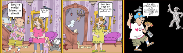 Nakon što su učenici izradili stripove, učiteljica je najuspješnije radove složila u knjigu s učeničkim radovima koristeći se alatom Bookcreator. Poveznicu na kojoj se nalaze učenički radovi učiteljica je podijelila s učenicima kako bi zajedno komentirali predikatne rečenice koje su učenici rabili u svojim stripovima.