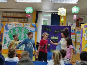 Pripovijedanje je osnova svake komunikacije, mašte i kreativnosti. Vrlo je učinkovito jer potiče razvoj emocionalne inteligencije, međusobno povezuje sudionike, proširuje poznavanje jezika, te djeluje opuštajuće. Profesionalna pripovjedačica priča Margareta Peršić posjetila je školu. U organizaciji i uz podršku Školske knjige omogućila je učenicima zabavan i poučan književni susret. Promičući pripovijedanje na zanimljiv način pripovijedala je narodne bajke i priče iz baštine različitih naroda i kultura.