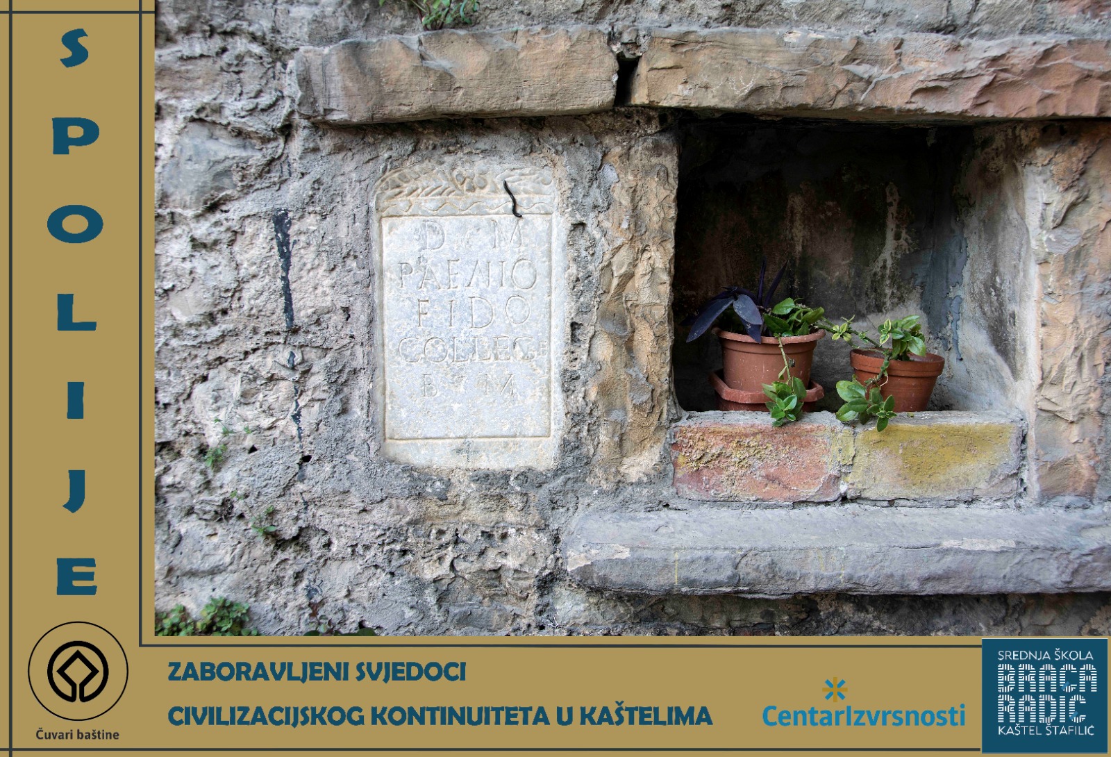 Cilj je projekta, u kojem sudjeluju učenici drugih i trećih razreda gimnazije s profesoricama Radojkom Hrgović, Andrijanom Skelić i Sanjom Rozga, istražiti, popisati i dokumentirati spolije u gradu, zabilježiti priče i anegdote lokalnog stanovništva koje živi u ili oko građevina ukrašenih tim vrijednim artefaktima, cijeli projekt dokumentirati fotografijama i video zapisom. Ovisno o epidemiološkoj slici, projekt će završiti izložbom u dvorcu Vitturi u Kaštel Lukšiću čime se želimo predstaviti kao svjesni čuvari baštine i aktivni sudionici kulturnog i javnog života grada Kaštela.