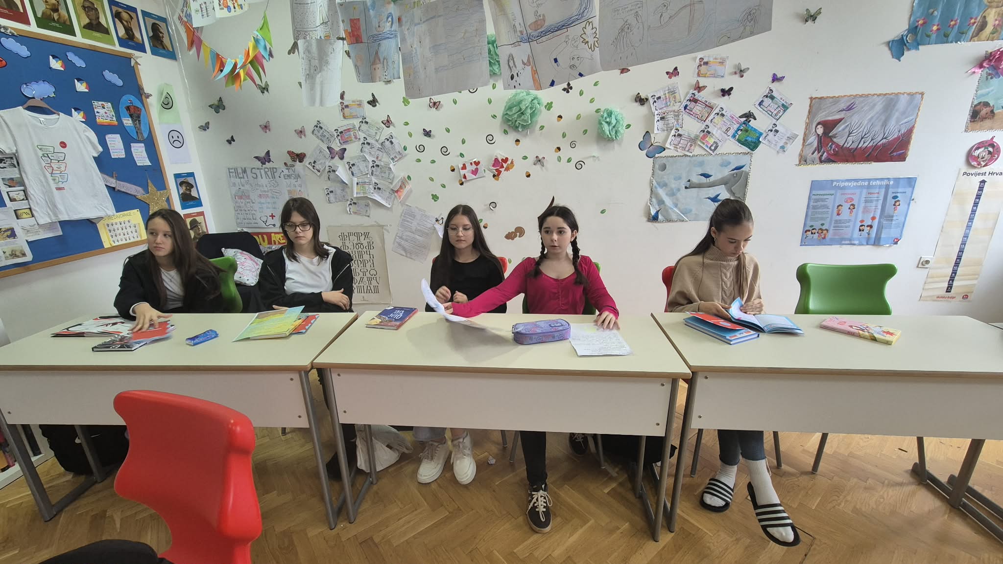 I ove školske godine šest vrijednih učenica nastavlja sudjelovati u međunarodnom projektu poticanja čitanja Naša mala knjižnica 3 (NMK3). To su: Nika Pipunić, Dorotea Mrkonjić, Jasmina Velagić, Viktoria Dević, Mia Garić i Matea Šimić. Danas je održano prvo predstavljanje njihovih kreativnih uradaka.