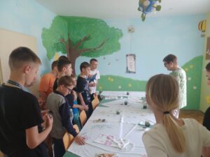 Na početku posjeta, ispred udruge učenike je srdačno dočekala gospođa Dragica Burek, koja ih je pozdravila i zaželjela im dobrodošlicu. Nakon toga, gospođa Ivana Vukić je preuzela vođenje aktivnosti s učenicima. Druženje je proteklo u veseloj i opuštenoj atmosferi, a učenici su imali priliku bolje upoznati članove udruge kroz razgovor i zajedničke igre. Također su razgledali izložbu radova koje su izradili članovi udruge, što je dodatno obogatilo njihovo iskustvo.