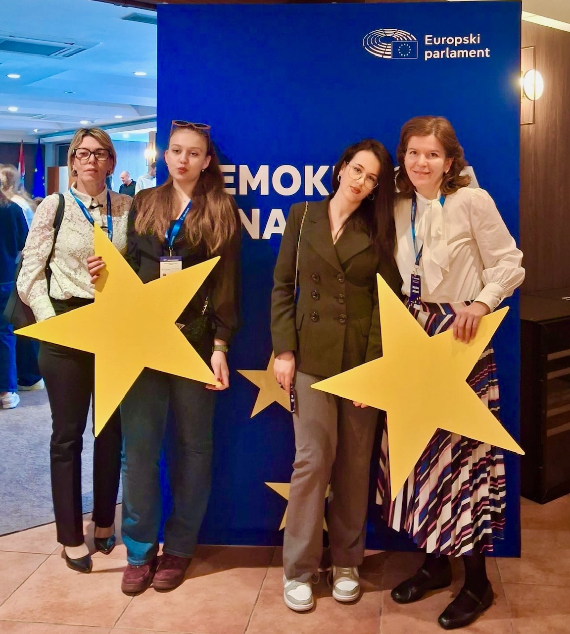 Junior ambasadorice imale su priliku za izravni razgovor s europarlamentarcima. Tina Buzov hrabro je postavila pitanje zastupniku Davoru Ivi Stieru, a Laura Koštroman eurozastupnici Sunčani Glavak – vrijedno iskustvo koje svaki mladi Europljanin može samo poželjeti.