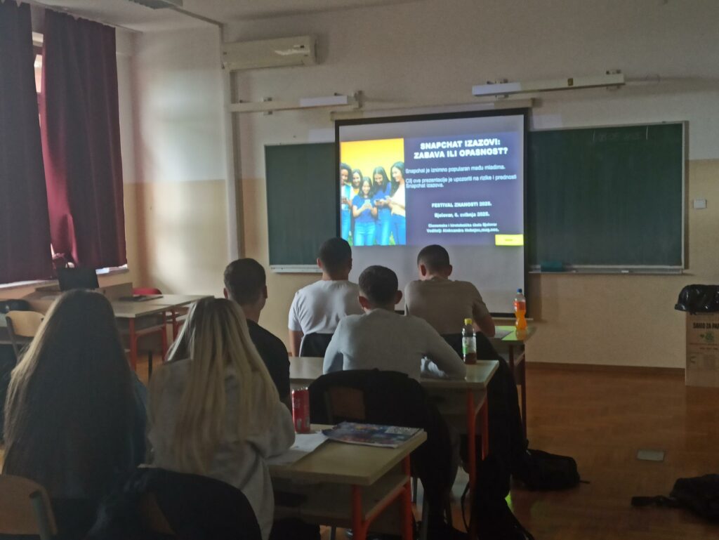 U sklopu Festivala znanosti 2025., u utorak 6. svibnja 2025. od 16:40 do 17:25 sati, po prvi puta u Ekonomskoj i birotehničkoj školi Bjelovar održano je predavanje pod nazivom „Snapchat izazovi – zabava ili opasnost?“. Predavanje je održala mag. oec. Aleksandra Hohnjec, a publiku su činili učenici drugog razreda srednje škole, točnije 2. c razred.