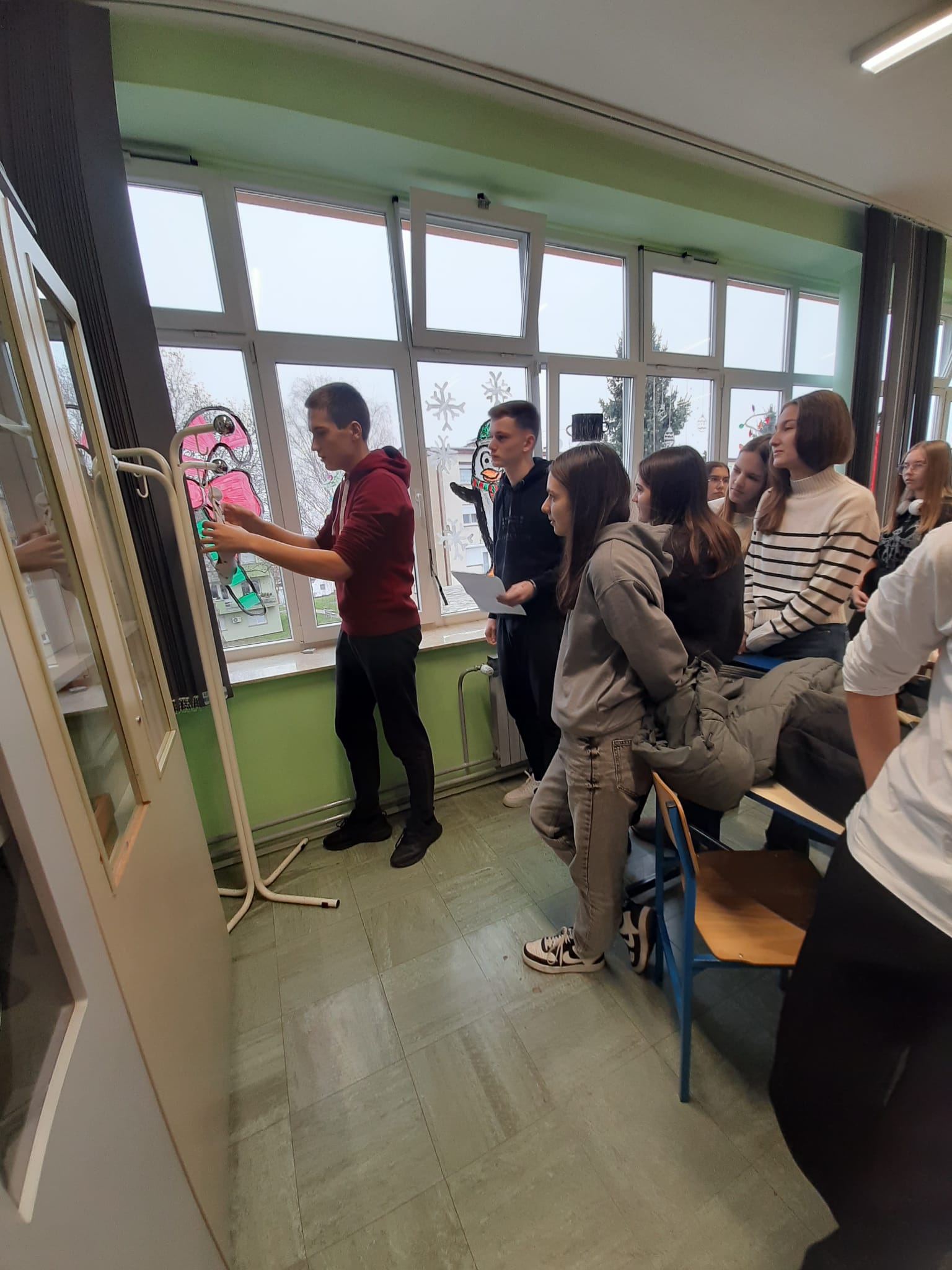 Treća skupina istražila je inerciju i svojstva materijala te primijenila prvi Newtonov zakon pomoću božićnih kuglica. Nadalje, primijenili su Hookeov zakon mjerenjem istezanja božićne čarape pod opterećenjem, izmjerivši početnu i konačnu duljinu te odredivši konstantu istezanja čarape. Četvrta skupina razvijala je komunikacijske vještine osmišljavanjem fizikalne priče na temelju provedenog eksperimenta, povezujući fiziku s blagdanskim raspoloženjem.