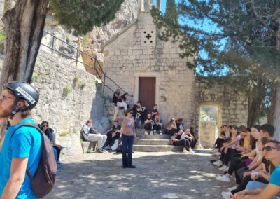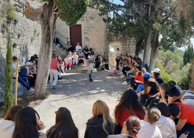 Nakon aktivnosti na Telegrinu, zaputili smo se prema Sedlu i crkvi sv. Jere. U dvorištu crkvice sv. Jere, ispod tajanstvenih eremitaža, učenici su poslušali niz kratkih i zanimljivih predavanja (povijest i botanika). Potom su se uhvatili u koštac s novim kvizom.