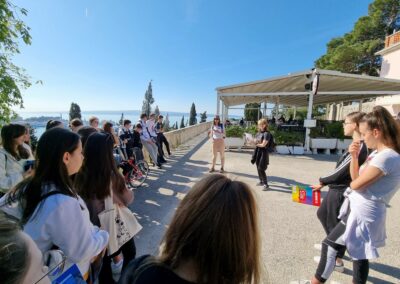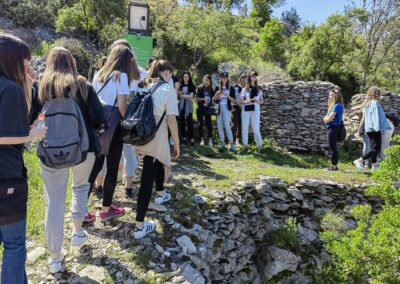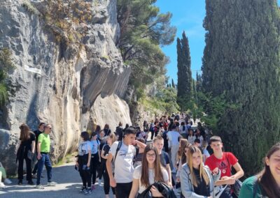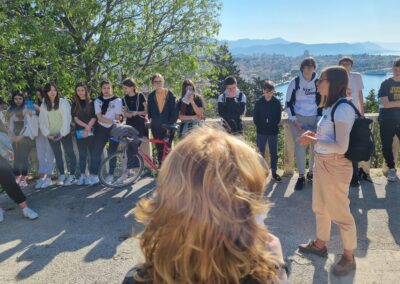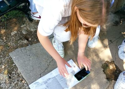 Na samoj stazi odredili smo pet “postaja”. Na njima su naše nastavnice Zrinka S. B. (povijest), Sanja R. i Dijana J. (botanika) te Ana Š. i Ravena Č. K. (geografija) mentorirane učenice 3. g razreda dočekale grupe učenika te im ispričale svoje priče.
