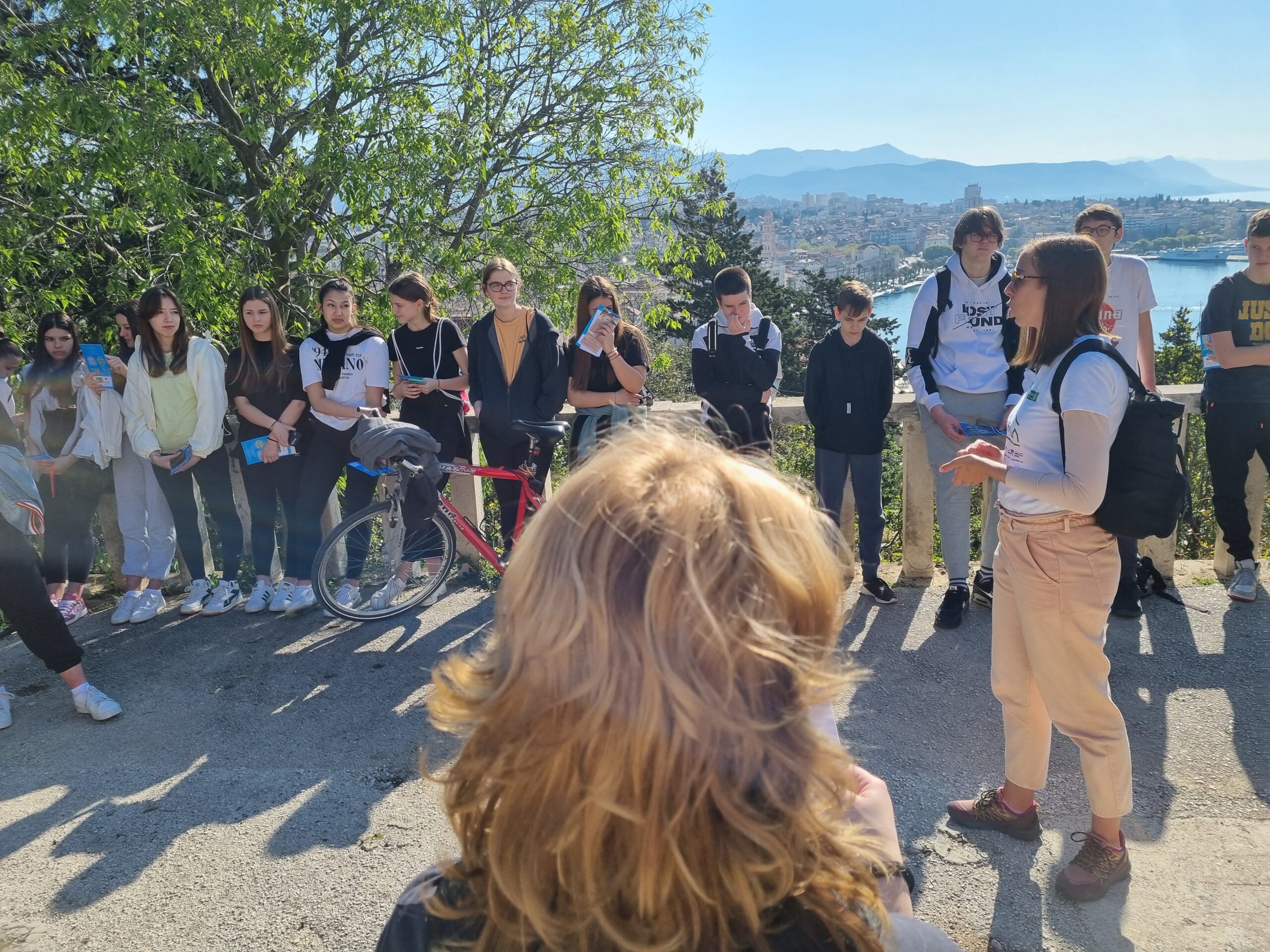 Nakon obilaska botaničkog vrta, predavanja, radionica i kvizova u botaničkom vrtu, nastavili smo se penjati prema najvišem vrhu Marjana, prema TELEGRINU. Na najvišem vrhu Marjana učenici su sudjelovali u radionicama – snalaženje u prostoru.