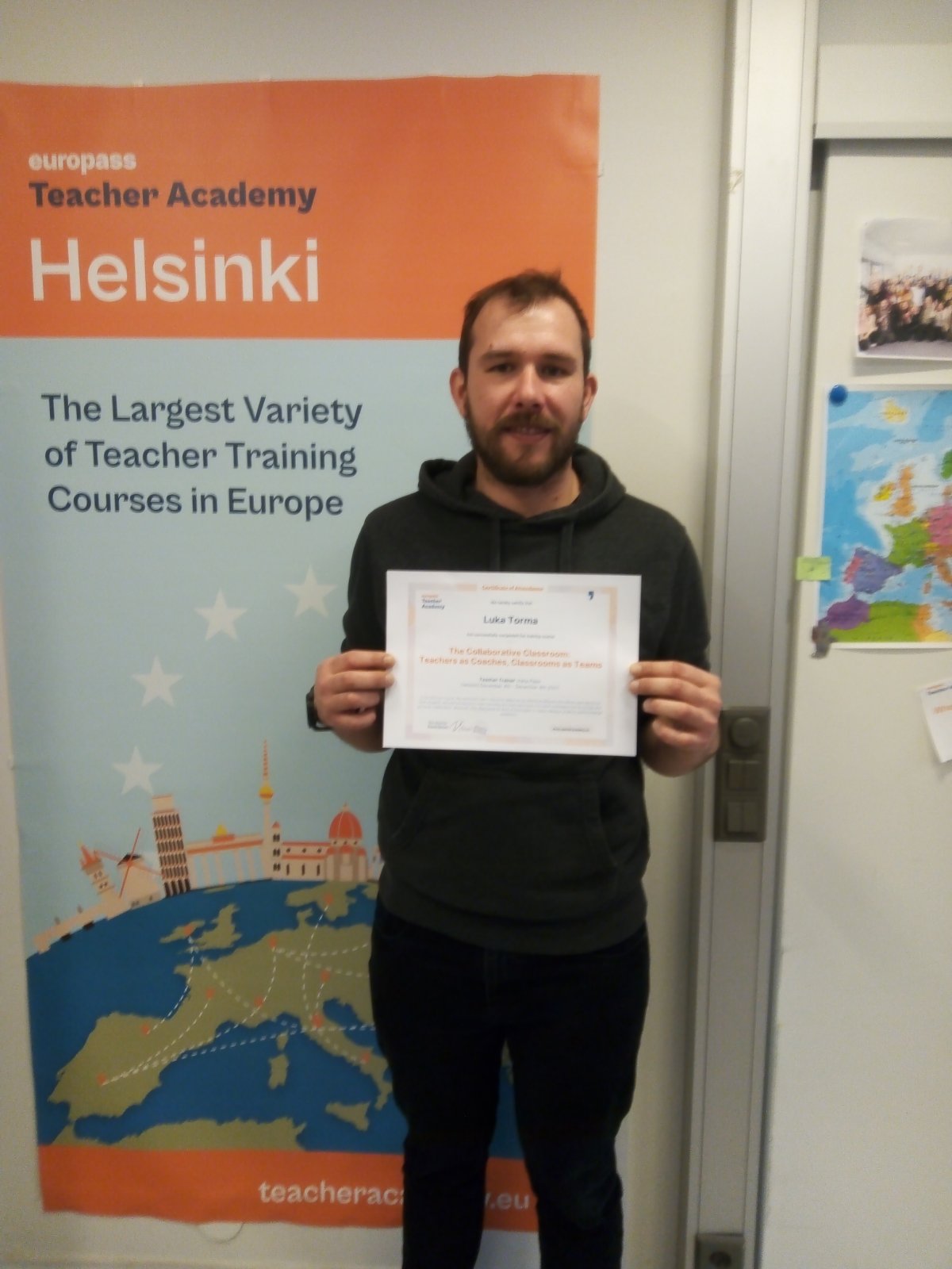 U organizaciji Europass Teacher Academyje učitelj Luka Torma iz OŠ Fran Koncelak Drnje pohađao je tečaj u Finskoj. Od 4. do 9. prosinca 2023. gdje je bio održan tečaj vezan uz poboljšanje kvalitete nastave Geografije. Sudjelovanje mu je omogućila Erasmus akreditacija, koju škola ima do 2027. godine.