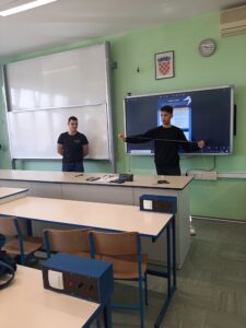 Prva skupina je imala zadatak istražiti valove pri potresu i valove na površini vode. Svoj rad prezentirali su u obliku emisije Nedjeljom u dva. Jedna učenica je bila voditeljica, a dvoje učenika gosti emisije koji su raspravljali o izvedenom pokusu na zadanu temu. Ostali učenici u razredu postavljali su im pitanja kao što to u emisiji rade gledatelji. Druga skupina je istražila zvuk, intenzitet zvuka i udare zvuka. Jedan učenik je svirao gitaru – žičani glazbeni instrumenti, a ostali su objasnili kako nastaje zvuk trzajem žice, što se događa mijenjanjem položaja prsta na žici te o čemu ovisi frekvencija žice. Na kraju su zajedno s ostalim učenicima iz razreda odredili osnovni harmonik te više harmonike.