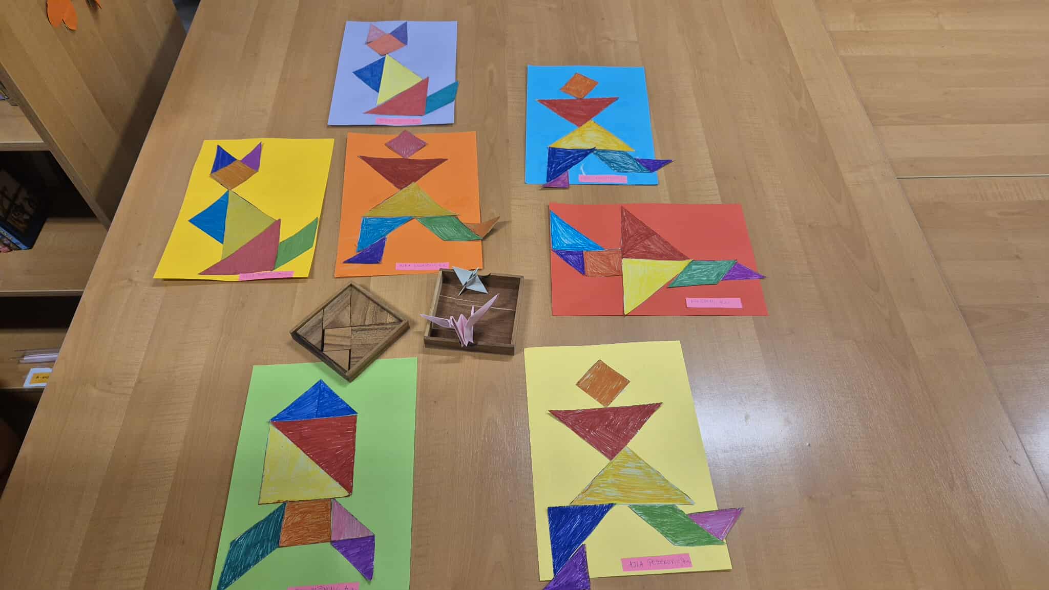 Učenici  4. a razreda upoznali su drevnu kinesku slagalicu Tangram i kroz igru s njezinih sedam dijelova razvijali logičko i prostorno mišljenje, pažnju i kreativnost. Slagli su različite oblike prema predlošku i vlastitoj mašti te kroz zadatke učili planirati i razmišljati poput malih programera. Aktivnost je  završila izložbom radova u školskoj knjižnici pod nazivom „Tangram majstori – kodiramo bez tipkovnice!“