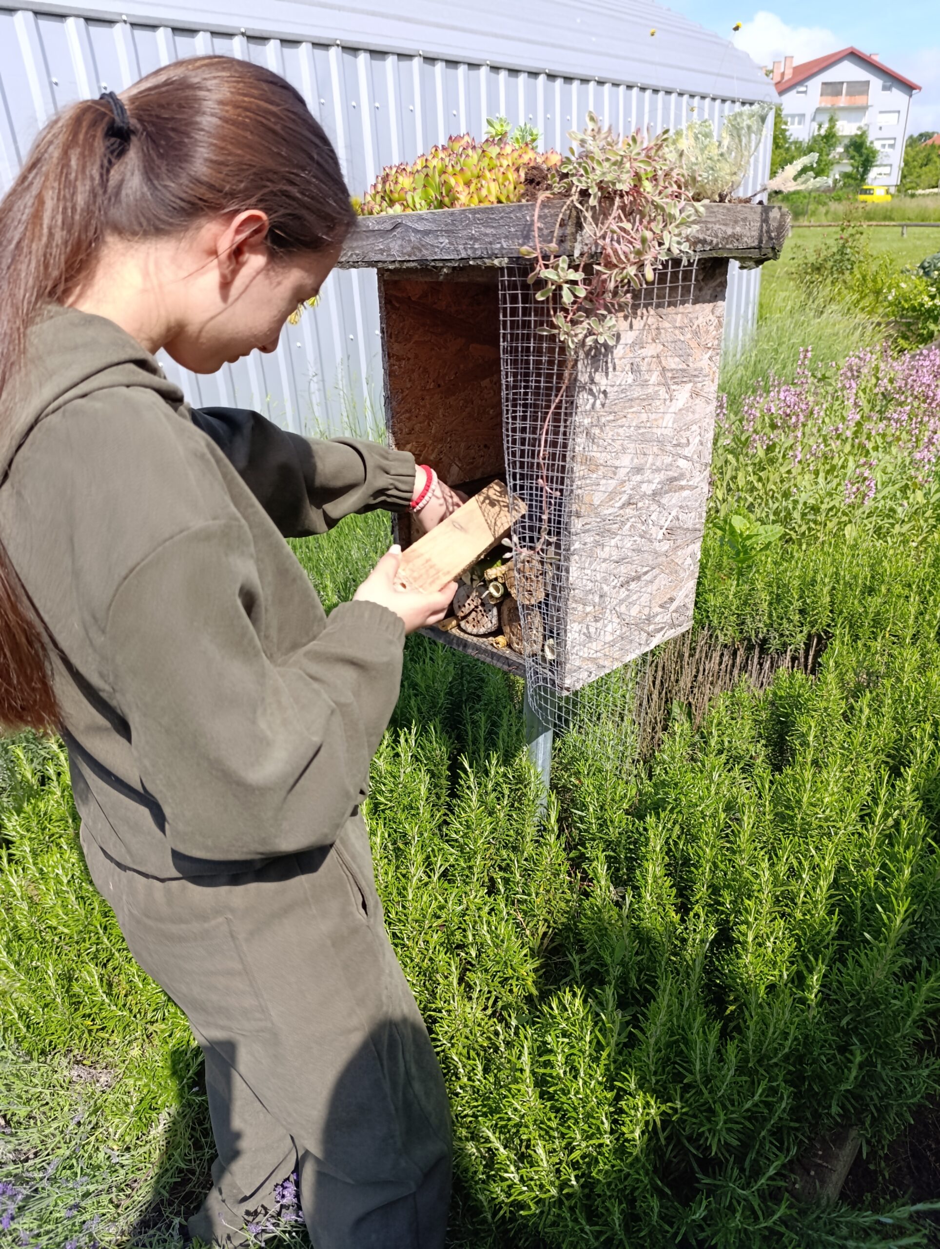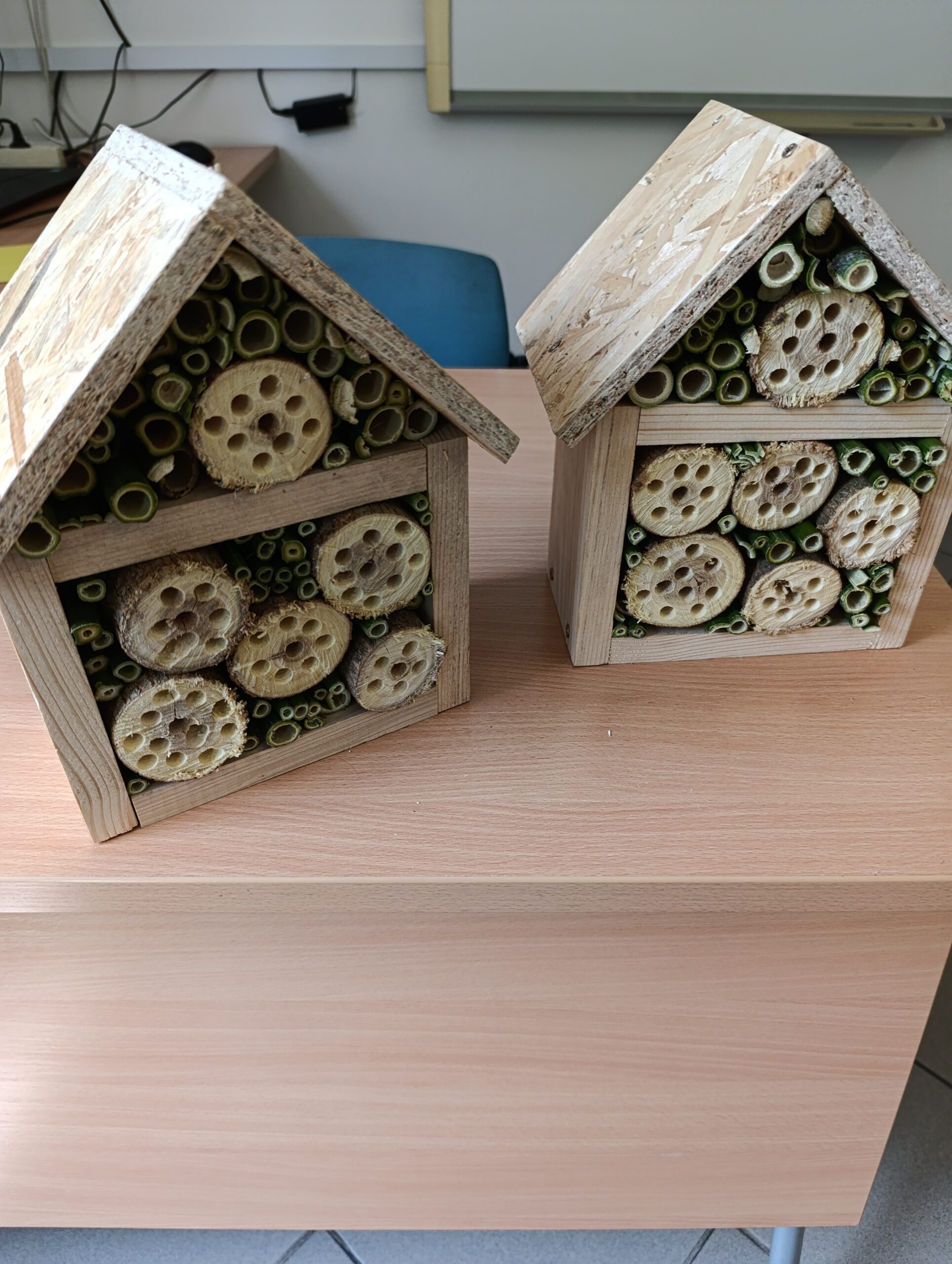 Učenici stolarskog zanimanja izradili su drvene konstrukcije, a zatim su učenice cvjećarskog zanimanja, zajedno s osnovnoškolcima, ispunjavali kućice drvenim oblicama i bambusovim granama, pretvarajući ih u sigurna utočišta za solitarne pčele.