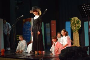 Na pozornici su se izmjenjivali narator Fran Bralo i Lea Tome, koja je utjelovila Ivanu Brlić-Mažuranić. Priredbom je predstavljen Ivanin put od Ogulina do Karlovca, zatim od Zagreba pa sve do Slavonskog Broda – u koji se Ivana preselila nakon udaje za Vatroslava Brlića. Prošetali smo tako kroz priču o danas svjetski poznatom malom postolarskom šegrtu Hlapiću, Šumu Striborovu, Regoča, priču o ribaru Palunku i njegovoj ženi te priču o Jaglencu i sestrici Rutvici. Program je završio pjesmom Ljubav sve pozlati Petra Graše koju je izveo školski bend pod vodstvom učitelja Miroslava Badrova.