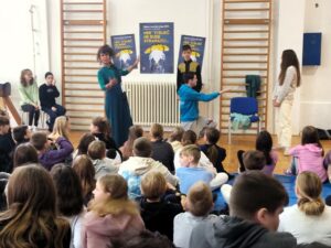Umjetnica Margareta pripovijedala je dvije bajke za svaku smjenu drugačiju, a kakva bi to bila bajka bez kraljeva, prinčeva, princeza, slugu, savjetnika, tajni, zagonetki… Učenici su postali glavni akteri u bajci, ali nisu bili ‘pošteđeni’ ni odrasli. Teško je prenijeti atmosferu, no možda će fotografije na mrežnoj stranici škole, približiti doživljaj radosti i smijeha. Na koji način pripovjedačica izabire glumce je njezina tajna…