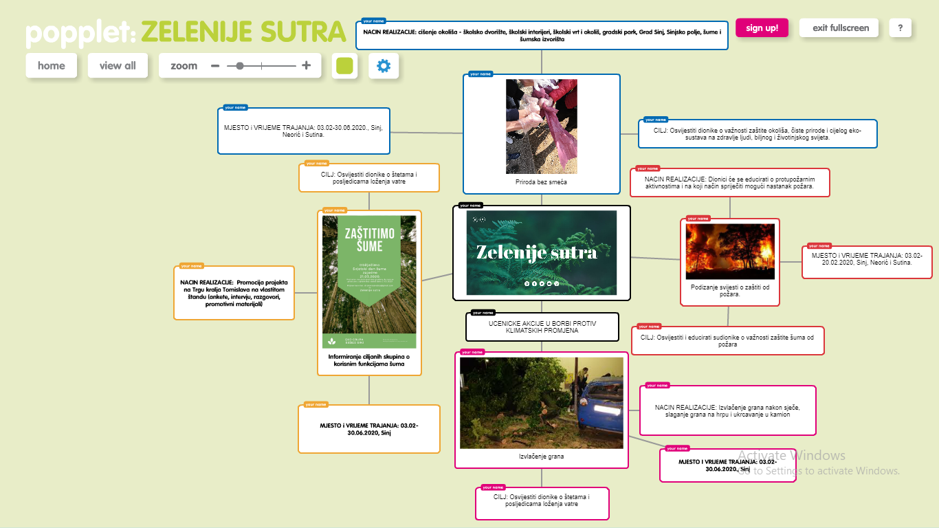 Učenici Srednje strukovne škole ban Josip Jelačić poručuju: “Budite i Vi dio projekta, pridružite nam se u planiranim aktivnostima: pošumljavanje, poribnjavanje i čišćenje šuma, šumskih izvorišta i potoka”.