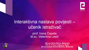 10. prosinca učiteljica Povijesti Valentina Lasić zajedno s učiteljicom Irenom Čapetom iz OŠ oca Petra Perice Makarska održala je predavanje pod naslovom „Interaktivna nastava povijesti – učenik istraživač“. Interaktivnim predavanjem iznijele su konkretne primjere korištenja didaktičkih alata (Genially,Biteable) u nastavi povijesti vođeni istraživačkim radom učenika na primjeru međuškolskog istraživačkog projekta (suradnja OŠ oca Petra Perice, Makarska, SŠ fra Andrije Kačića Miošića, Makarska i OŠ dr. Franje Tuđmana, Brela) o kulturnoj baštini Makarskog primorja (izrada interaktivnih karata, lenti vremena, video isječaka i animacija na zadanu temu).