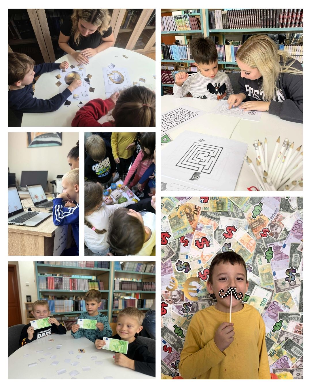 Veliko zanimanje kod mališana pobudila je i izložba štednih kasica u holu škole te foto-kutak u kojem su se fotografirali pozirajući s različitim rekvizitima i edukativnim citatima o novcu i štednji.