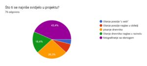 Ocjenom odličan projekt je ocijenilo 65 učenika (85,5 %), ocjenom vrlo dobar 10 učenika (13,2 %), a 1 učenik je projekt ocijenio ocjenom nedovoljan (1,3 %). Velikoj većini učenika (71,1 %), projekt je pomogao da čitaju bolje i lakše. Sve odgovore na evaluacijski upitnik možete pročitati u dokumentu: EVALUACIJA. Ono što je posebno u projetkima, što nakon završenog projekta, učenici imaju ideju i želju za radom u novim projektima. Pročitajte njihove prijedloge: Ideje o novom projektu.