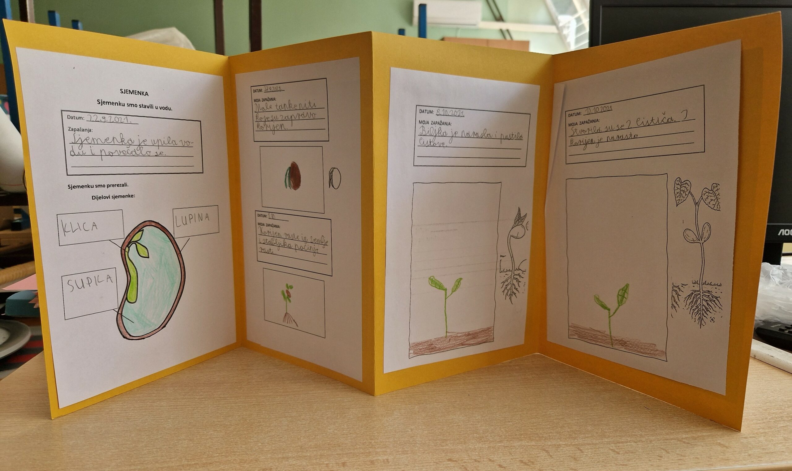 U obliku lapbooka sačuvani su učenički radovi o snalaženju u prostoru: crtež i opis škole i ulice (1. razred); rezultati istraživačkog rada o mjestu u kojem učenici žive (2. razred); brošura o zavičaju koju su izrađivali učenici (3. razred) i plakati o nacionalnim parkovima (4. razred).