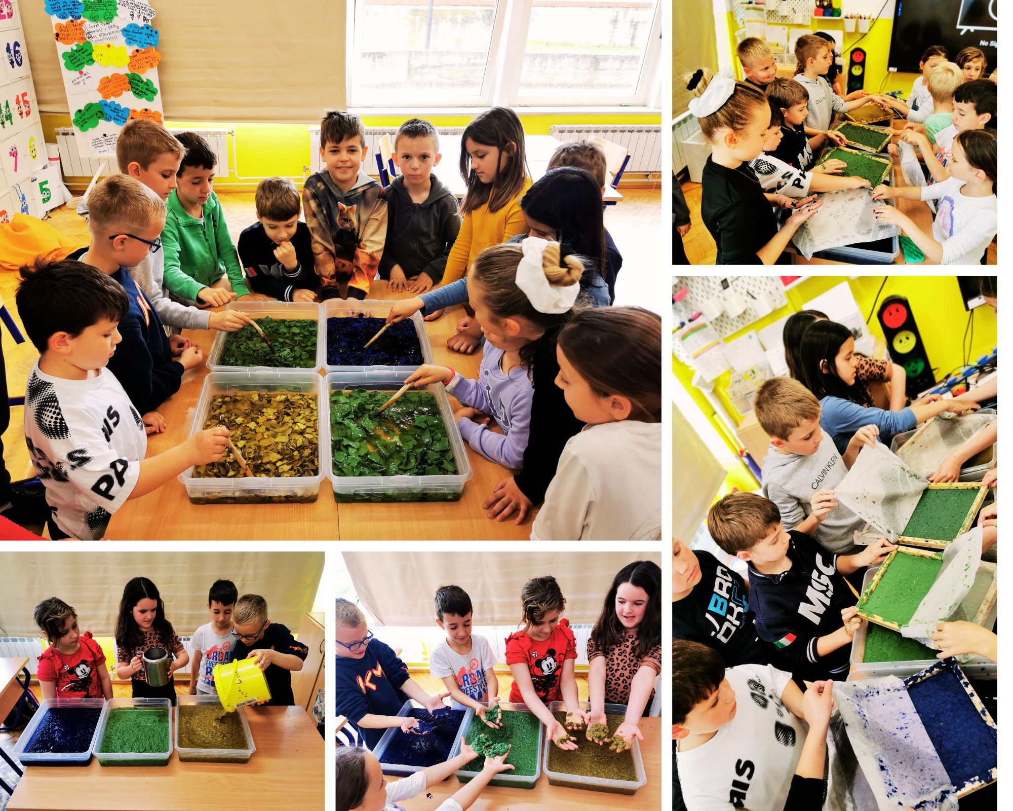 Tako su se učenici kroz praktičan rad upoznali s pojmom upcycling ili ponovne upotrebe, a hand made papire koriste za čestitke povodom Majčinog dana. Osim samog procesa ponovne upotrebe resursa koje imamo, učenici su naučili raditi u timu te su vježbali svoje motoričke vještine jer izrada papira iziskuje strpljenje i preciznost u radu.