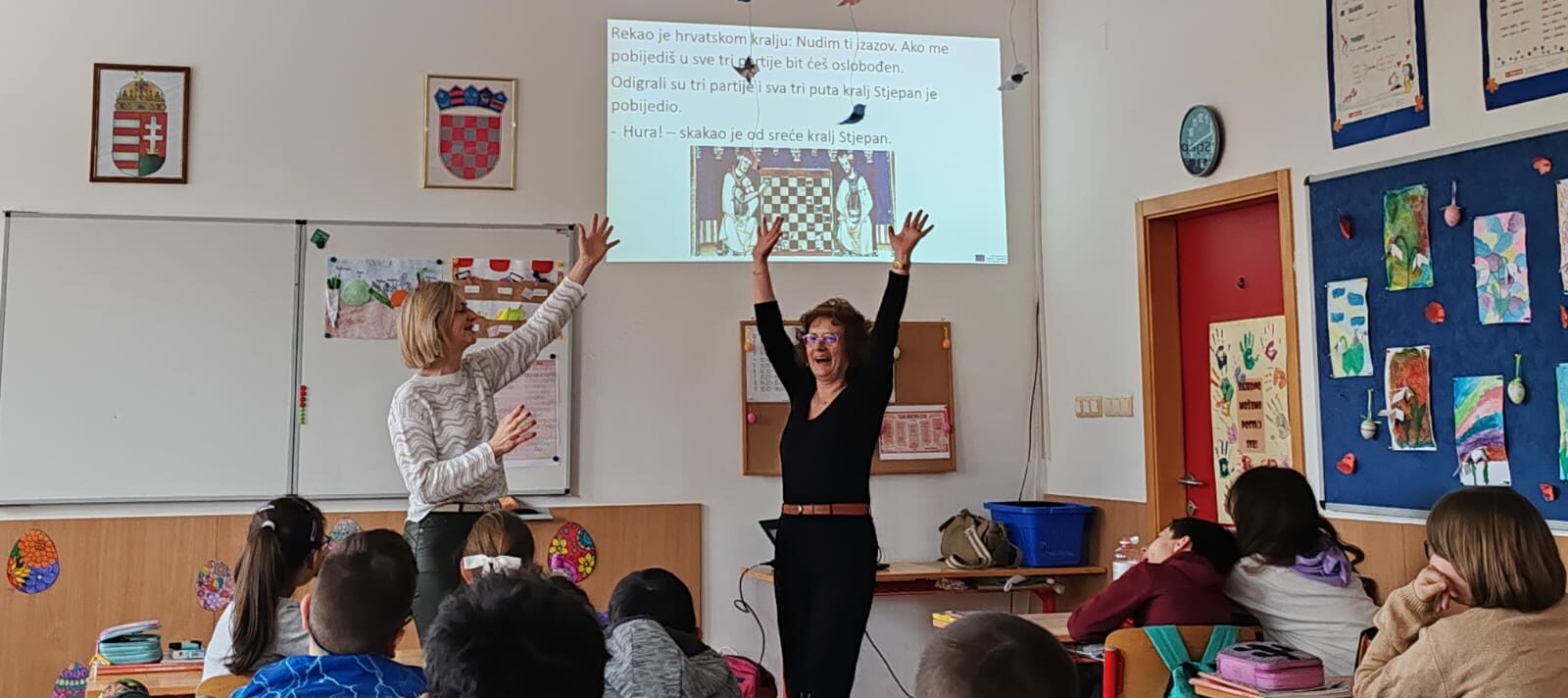Nastava je bila interaktivna i dinamična, s temama vezanima uz kulturnu i prirodnu baštinu te održivi razvoj uz upotrebu digitalnih alata. Na satu Hrvatskog jezika obrađena je Legenda o hrvatskom grbu i šahovnici. Sat je započeo igrom asocijacija, a zatim je slijedilo čitanje legende, potkrijepljeno ilustracijama i dramatizacijom. U završnom dijelu učenici su rješavali listiće s osmosmjerkama i križaljkama.