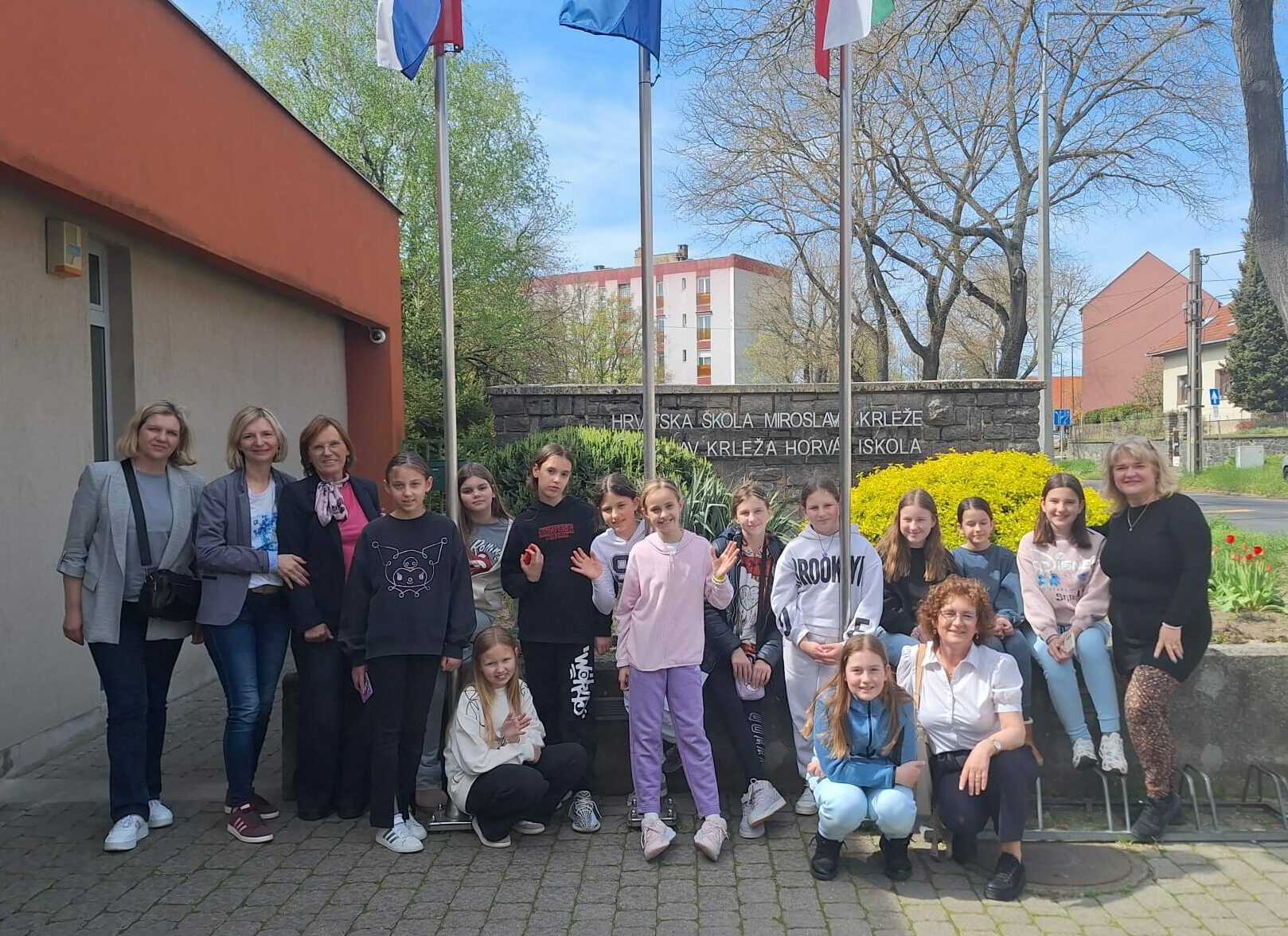U Pečuh su stigli u večernjim satima. Osnovna škola Miroslava Krleže, dvojezična obrazovna ustanova, ima za cilj očuvati, jačati i razvijati identitet, kulturu, jezik i običaje Hrvata u Mađarskoj. Škola je osnovana 1952. kao srpsko-hrvatska, a od 1991. djeluje kao hrvatska škola s nastavom na hrvatskom jeziku. Danas obuhvaća dječji vrtić, osnovnu školu, gimnaziju i đački dom. Pohađa ju 318 učenika, a zaposleno je 52 djelatnika. Matura se provodi na hrvatskom i mađarskom jeziku, a učenici dobivaju dvojezične svjedodžbe.